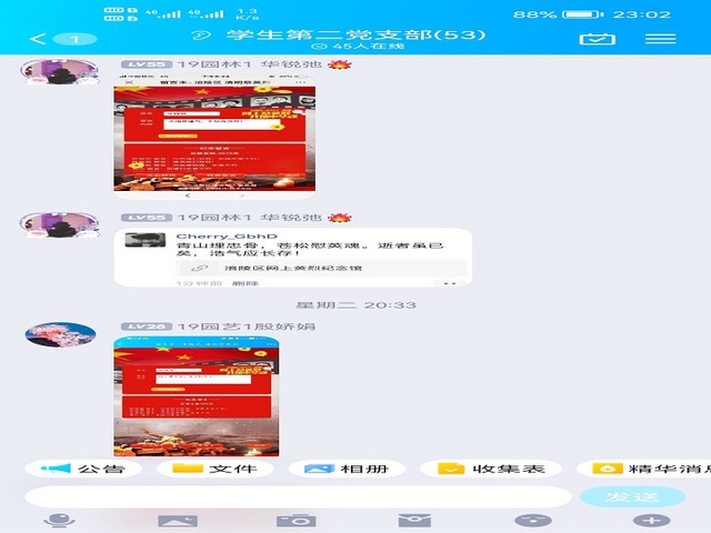 活动伊始,由支部书记李明方同志宣布活动主题。第一项活动议程为党支部组织推行网络祭扫,缅怀英烈伟绩。以中华英烈网、市退役军人事务局微信公众号中的“重庆英烈纪念堂”、“涪陵网上英烈纪念馆”为主要祭扫平台,组织广大师生党员积极参与“2022·奋进·网上祭英烈”活动。通过网上祭奠,敬献花篮,抒写感言寄语等方式,缅怀烈士丰功伟绩,表达对英烈的感恩和敬仰。第二项活动议程为传承英烈精神,奋进伟大征程。支部书记进行组织学习教育引导党员永远铭记英烈事迹、弘扬英烈精神、传承红色基因、赓续红色血脉,沿着革命先烈指引的方向,以习近平新时代中国特色社会主义思想为指导,永葆初心、牢记使命,勇挑重担、苦干实干,为实现中华民族伟大复兴的中国梦不懈奋斗,为党的二十大胜利召开营造良好社会氛围。第三项活动议程为宣传英烈的英雄事迹、讲好红色故事。向宇慧同志结合自身所了解到的戍边烈士陈祥榕的英雄事迹,向我们讲述了应该如何学习英烈、崇尚英烈、铭记英烈的高尚情操。