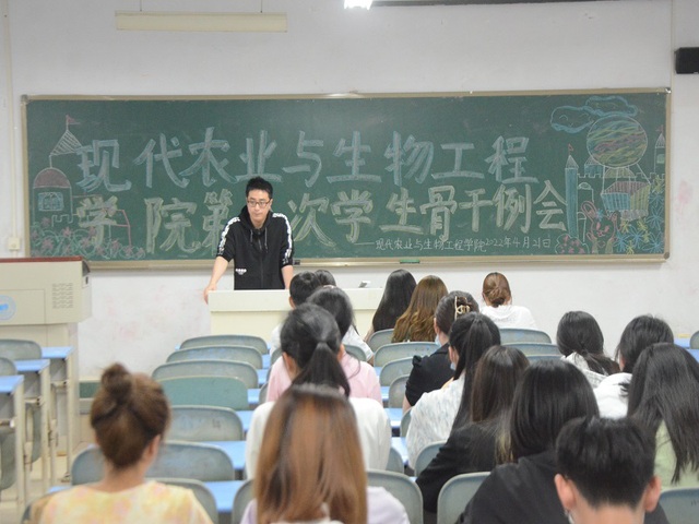 为总结本周工作经验,确保下周工作顺利开展,现代农业与生物工程学院于2022年4月21日下午18:10在正心楼109开展了第八次学生组织工作例会。此次例会由现代农业与生物工程学院2020级辅导员汪明训老师主讲,并由学风建设部主持,全体学生骨干参加。
