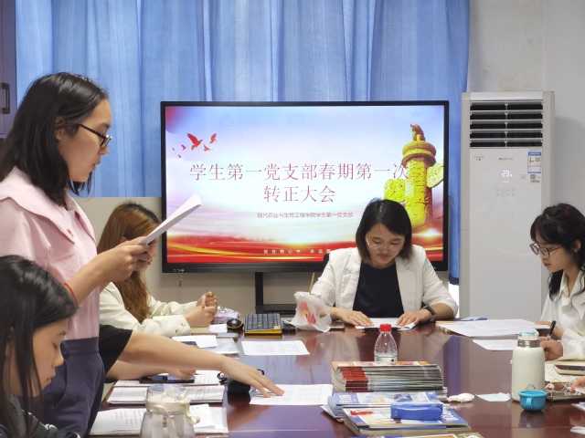 现代农业与生物工程学院学生第一党支部于2022年4月28日12:15,在格理楼4213会议室开展2022年春期第一次党员转正大会。本次大会的议题是“讨论预备党员的如期转正问题”。此次党员转正大会由支部书记吴林蔓同志主持,学生第一党支部党员应到38人,实到31人,请假7人。
