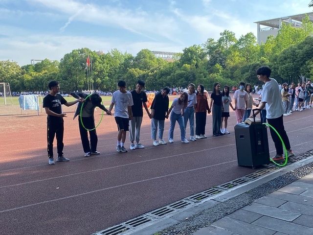活动伊始,各班纪律委员进行人数清点,在纪律委员确定到场人数应到26人实到26人准确无误后,团会进行到了第二项——合唱团歌。嘹亮的歌声展现了当代大学生积极向上,朝气蓬勃的精气神。随后进行第三项——“一圈到底”,这个团体项目即为每个班六个人手拉手连成一排,第一个人把呼啦圈套在身上在每个人不松开手的情况下把呼啦圈顺利的传到最后一个人的手上。活动的难处所在,不仅考验每个人的肢体协调能力更是考验同学们之间是否能将呼啦圈传到下一个同学的身上。紧接着进行“和谐共进”项目,即每三个同学一组把左右脚分别绑在一个道具上,同时迈进同一只脚来达到三个人步调一致并前进的目的。活动在同学们一声声口号中顺利的进行到了尾声。在此项活动中,也出现了意外的插曲:男生组在开始的时候疏忽大意没有步调一致,导致吃了“闭门羹”。最终园艺一班在这几项活动中取得了第二名的成绩,同学们边喝着齐心协力赢来的“战利品”边听着班导师莫言玲老师的点评,都感到非常的开心与惬意。在各个班委进行了事务传达后,此次班级联谊特色团会圆满结束。