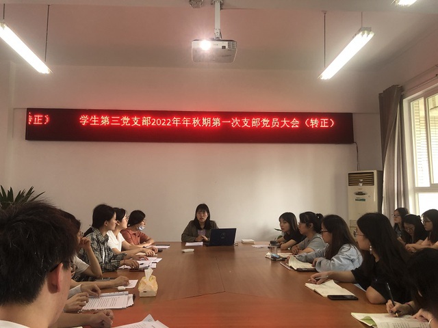 2022年4月28日,现代农业与生物工程学院学生第三党支部于格律楼3416会议室举行了学生第三党支部2022年春期第一次支部党员大会(转正)。会议由支部书记胡代芳同志主持,学生第三党支部应到党员32人,实到党员32人。