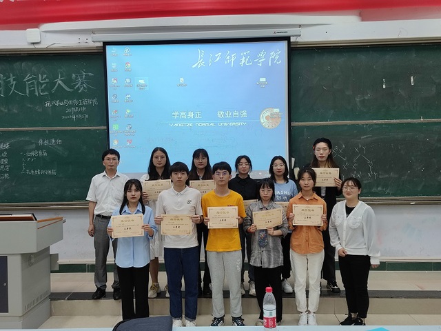 试讲结束,冉景盛老师总结本次教学技能大赛中同学们的教学片段出现的问题,对未来的教学工作进行了规划和展望。最后,由主持人张静同学公布获奖情况,获奖同学上台进行合影留念。