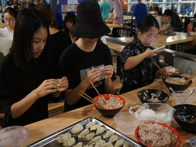 在特色班会开始前,由生活委员何钰萍、团支书孙春等同学负责采集物资,备好馅料。在班长组织安排好工作后,全班接着便加入了此次特色活动的主要环节——包饺子。同学们便拿起提前准备好的材料,愉快的包起了饺子。在此期间,所有同学都积极参与其中,会包饺子的教不会包饺子的同学,同学之间也相互分享着自己组所煮熟的饺子,不分你我,整个活动过程中都充满着欢声笑语。的确,这样一个能亲自动手做一份食物的机会,让我们体会到了粮食的珍贵和劳动的不易。那种劳动所给予我们的快乐,是任何都代替不了的。经过一番等待,香喷喷的饺子便出锅了。同学们各自拿着调料调制着自己所喜爱的口味,美食的快乐打动了在场的每一位同学。大家都十分珍惜自己的劳动成果,也越发体会到在疫情的严峻考验和国际经济萧条的情况下,生活在衣食无忧,灯火通明的中国是有多么地幸运。