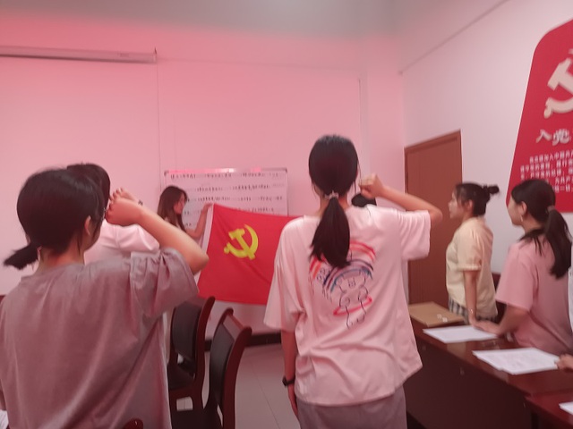 接下来,会议讨论表决了周骏同志的入党事项,最终结果为全票同意接收周骏同志为中共预备党员,并由胡代芳书记宣读了支部决议。最后,支部书记胡代芳书记对周冰同志、周骏同志加入党组织表示欢迎和祝贺,同时希望两位同志以此为契机,再接再厉,认真学习贯彻党的政策,以一名党员的标准严格要求自己,充分发挥一名共产党员的模范带头作用,积极发挥自身优点,为同学、班级、支部、学院和学校做出自己的贡献。最后,全体党员面向党旗进行入党宣誓。至此,大会圆满结束。