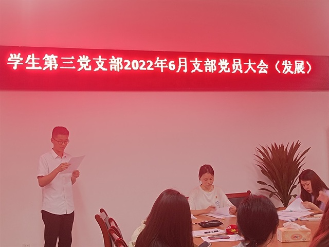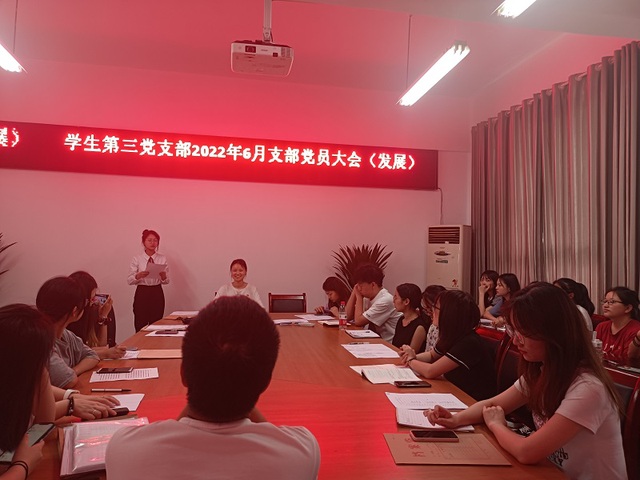 2022年6月16日,现代农业与生物工程学院学生第三党支部于格律楼3416会议室举行了学生第三党支部2022年6月支部党员大会。 会议由支部书记胡代芳老师主持,学生第三党支部应到党员35人,实到党员34人,请假1人。