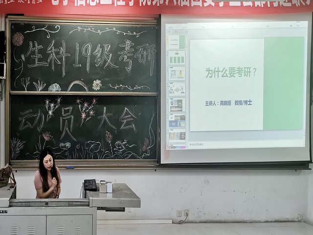 为帮助同学们确定考研目标,了解相关备考信息,鼓舞同学们的考研士气,坚定努力拼搏的信念,现代农业与生物工程学院于2022年6月30日16:20在格律楼03教室召开2019级生物科学专业考研动员大会。本次大会由现代农业与生物工程学院系主任张燕主持,食品专业资深博士高晓旭老师主讲,2019级意向考研的同学参与。