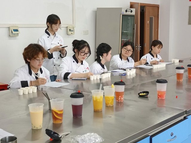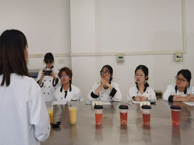 2022年5月21日晚7时,食品科学与文化协会顺利举办食品安全知识竞赛,胜出的十五位同学获得去实验室亲自做美食的机会,由此面向该十五位同学协会推出冰爽一夏之果茶DIY活动,于2022年6月12日晚9时在格律楼3501-2实验室顺利开展。协会提供果酱、红茶、珍珠、杯子等果茶制作材料,本次活动由协会的五位干事作为评委。