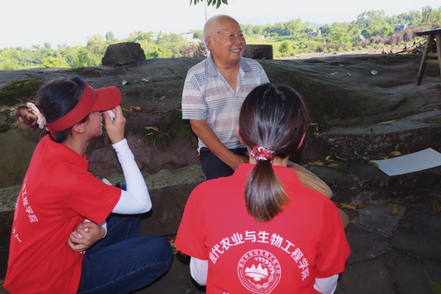 2022年7月12日,长江师范学院现代农业与生物工程学院“逐梦薪火人”科技支农服务团前往义和镇松柏村,了解当地老人的现状。