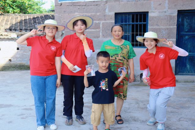 服务团队员们来到松柏村后,村里有许多老人正在干活,有的在河边洗衣服,有的在庭院里晒豆子、剥玉米。队员们拿起手中的相机,悄悄记录下来,给他们一个小小的惊喜。在前行途中,一位老奶奶上前十分热情地欢迎队员们的到来。队员们了解到,老奶奶今年已经有86岁了,自己一个人住在这里,孩子都在外工作很少回来。尽管只身一人,但老奶奶仍将院子打理得井井有条,在院子种了冬瓜、生姜、茄子、辣椒,坝子里也干干净净。可能是长期很少跟年轻人交流,老奶奶显得腼腆害羞,在与队员们拍照时也不自在,但在队员们亲切的关心问候下,老奶奶显得自在多了,开心的像一个小孩子。队员们将洗好的照片送给老奶奶的时候,她非常开心。看着自己的照片,老奶奶说:“好久都没有拍照了,上次拍还是好多年前了。谢谢你们啊!”队员们表示,这也是我们应该做的,祝奶奶身体健健康康,同时告诉奶奶天气炎热,要注意防晒防中暑。