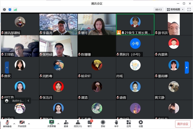 会议伊始,主持人调试设备并提前通知参会人员准时入会。首先,由主持人清点到场人数,确保全员到场。而后,此次班会正式开始。紧接着,主持人带领同学们合唱班歌。伴随着歌声,主持人表达了对新生加入现代农业与生物工程学院这个大家庭的热烈欢迎,并强调,同学们已经踏入一个新的阶段要尽快调整心态迎接新环境,要有自己的大学规划和目标。而后,以史为例,向同学们阐述了党的十八大以来取得的重大成就,并向同学们提出“如何增加国家自信”“在了解党的历史性成就后有什么感受”等问题,同学们积极讨论并做出了自己的回答,更加深刻的意识到了走中国特色社会主义道路的必然性与正确性,并对即将到来的党的二十大充满期待与自信。紧接着,主持人展开安全宣讲,就新生入学可能发生的诈骗事件,交通安全等问题展开宣讲,引导学生提升安全素养,增强防范意识,进一步保护学生的身心健康与财产。最后,主持人再次对同学们的到来表示热烈的欢迎,希望同学们风雨兼程走过韶华的大学四载,勇往直前书写瑰丽的人生蓝图。