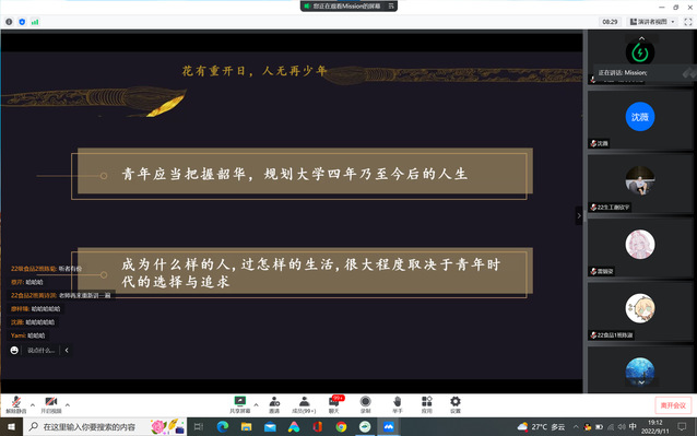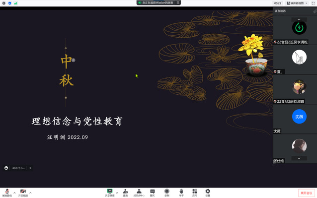 为教育和引导新生树立远大理想,坚定爱国信念,进一步加强学生的思想道德建设,培养一批有理想、有信念的中国特色社会主义的建设者与接班人,现代农业与生物工程学院于2022年9月11日利用即时通讯设备组织开展理想信念教育活动。此次活动由辅导员汪明训老师主持,2022级全体新生参加。