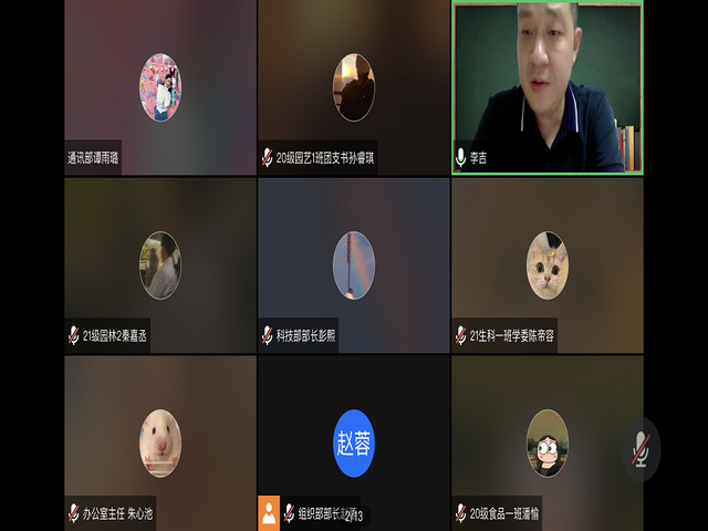 月缺不改光,箭缺不改钢。新学期到来之际,为确保学生工作的顺利开展,长江师范学院现代农业与生物工程学院于2022年9月8日下午6:10在腾讯会议举行线上学生骨干工作例会。本次会议由组织部部长赵蓉主持,团委书记李吉老师主讲,现代农业与生物工程学院全体学生骨干参加。