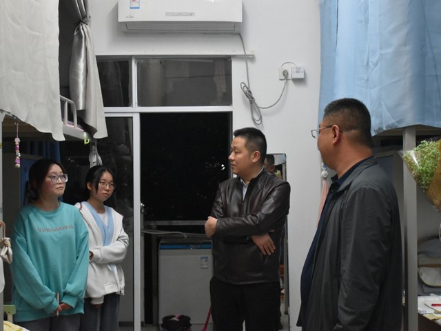 为了让22级新生尽快适应校园环境,找到归属感,2022年10月25日晚9点,现代农业与生物工程学院党委副书记李昌满,院长汪建华,副院长郑俏然、王殿东,团委书记李吉,22级辅导员胡代芳前往学生寝室慰问新生。学生会主要骨干与社区建设部参与。