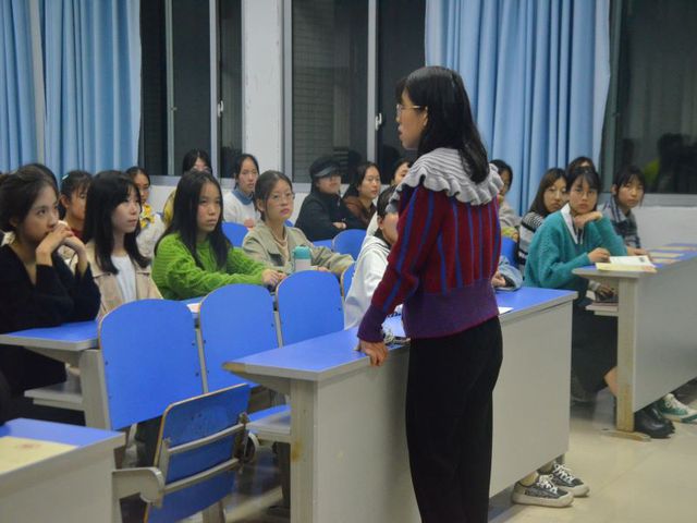 在播放电影前,各班进行经验分享会,同学们深入讨论入学感受、校园印象、大学四年规划等。各班导师分享自己的大学经验,为同学们大学生活做参考,并为同学们开导心路,用多起事例鼓舞同学们学习的热情和信心,抚慰同学初入大学的惶恐不安,为同学们的心里安上了稳定器。辅导员胡代芳老师也十分重视此次活动,亲自到各班分享自己的大学经验。