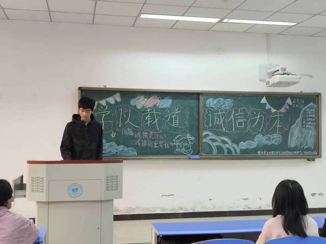 会议开始,由各班纪律委员进行点名,清点会议人数,并上报纪检部。随后,全体同学起立,由文娱委员领唱班歌,一展高昂的精神风貌。而后,各班主讲人进入主题,主讲人通过宣讲古今守诚信的人物故事,呼吁同学们在学习和生活中坚守诚信,筑牢修身做人之本。更是强调大学生要做到言出必行,才会行之有果。诚实守信是人类千百年传承下来的优良道德品质。诚信既是个人道德的基石,又是社会正常运行不可或缺的条件。诚信缺失的个人将失去他人的认可,诚信缺失的社会将失去人与人之间正常社会关系的支撑。而后,主持人提出“诚信在我们生活中有哪些体现?”“作为大学生该如何做到诚信?”等问题。同学们积极讨论并踊跃发言。之后,主持人进行人文书籍推荐,各班班委进行事务传达。会议尾声,主讲人进行安全宣讲活动。