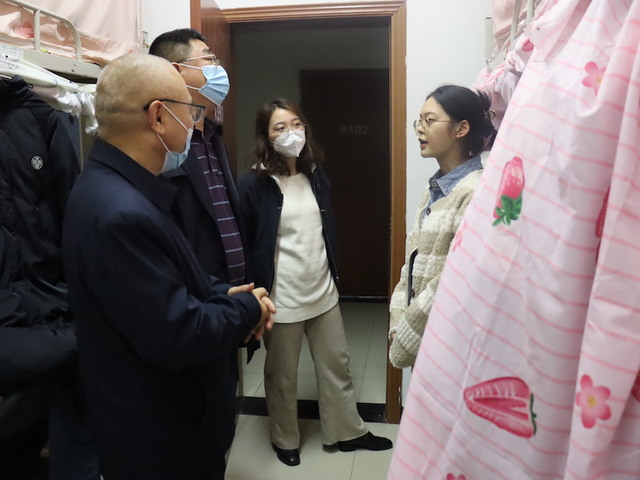 为了了解同学们的封校生活,缓解2019级考研同学的压力,长江师范学院现代农业与生物工程学院开展寝室探望活动。党委副书记李昌满、院长汪建华,副院长郑俏然、王殿东,2019级辅导员吴林蔓老师一行于2022年11月17日晚上7点前往南苑一舍和南苑八舍探望2019级同学。