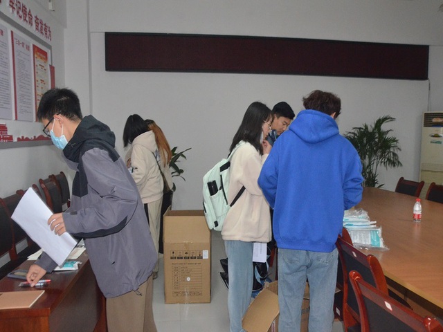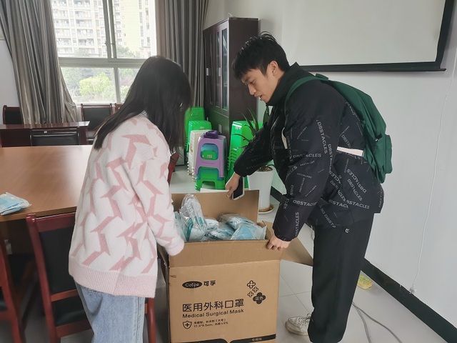 为响应重庆市政府的号召,做好校园疫情防控,现代农业与生物工程学院于2022年12月4日在格律楼3416会议室有序进行医用口罩的分发,一人可领取两包口罩。由各年级的各班班长进行清点并转交给同学们。