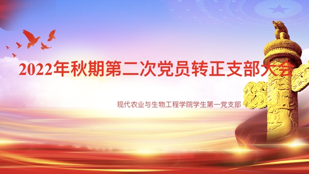 现代农业与生物工程学院学生第一党支部于2022年12月9日14:00,在线上开展2022年秋期第一次党员转正大会。本次大会的议题是“讨论预备党员的如期转正问题”。此次党员转正大会由支部书记吴林蔓老师主持,学生第一党支部党员应到41人,实到40人,请假1人。