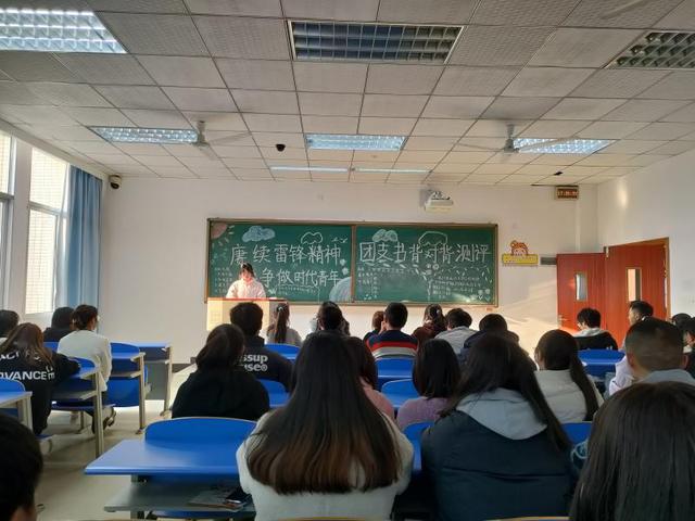 会议伊始,由各班纪检委员点名,清点到场人数。随后,在文体委员的带领下全体起立并合唱团歌。然后,在组织部和纪检部的监督下完成团支书“背靠背测评”工作。紧接着,主持人介绍本次团会背景,并讲述雷锋艰苦朴素的事迹以及宣扬以“全心全意为人民服务”为核心的雷锋精神内涵,激励同学们学习精神、领悟精神、弘扬精神。同时,向同学们提出“我们应如何发扬雷锋精神”“我们如何将雷锋精神应用于生活中”等问题,同学们热烈讨论,踊跃发言。主持人指出,作为青年一代应坚定理想信念,培育以助人为乐、甘于奉献为核心的雷锋精神,把崇高理想和道德品质追求转化为实际行动,主动承担社会责任。接着,各班相应同学进行人文书库的推荐。最后,由各班班委进行事务传达。