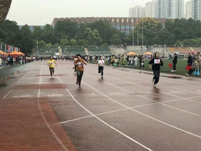 绿茵操场,沸腾喧嚣。赛场上,各院运动员们激情飞扬,奋力拼搏,争创佳绩,赢得了在场的同学们一阵又一阵的欢呼与加油。裁判员们认真履职,严肃裁判,维护了比赛的公平公正。只听比赛枪声响起,每一个运动员目光如炬,脚步坚定,用激情点燃青春,用汗水博得荣耀。在4×400米中,参赛同学相互协作,巧妙配合。每一个小队都势不可挡,分秒必争;在1500米跑道上,运动员们紧盯着前方,矫健的身影向前穿梭。他们汗水洒在跑道, 浇灌着成功的花朵。观众席上的同学们也不遑多让,纷纷为运动员加油助威,呐喊声不绝于耳;在赛场外,负责后勤服务工作人员也不辞辛苦,保障有力。志愿者们及时为运动员送上温水缓解疲劳,递上毛巾帮同学拭去头上的汗水。他们的身影共同成为了汇成了这个春天里最为靓丽的风景线。整个南苑运动场内外,耳畔喝彩掌声、呼啸秋风,夹杂混合成了最动人的赛场诗篇;身边铿锵步伐、点滴汗水,汇聚成了强大的驱动力量。各个学院的运动员们都拼尽全力,赛出风采,赛出自我。在全校师生的共同努力下,经过两天的拼搏,各院都屡创佳绩。最后,在闭幕式上,主持人宣布奖项及各院名次,其中男子团体桂冠由电子信息工程学院摘得,女子团体第一名由教师教育学院获得。我院获得男子第七名,女子第六名。