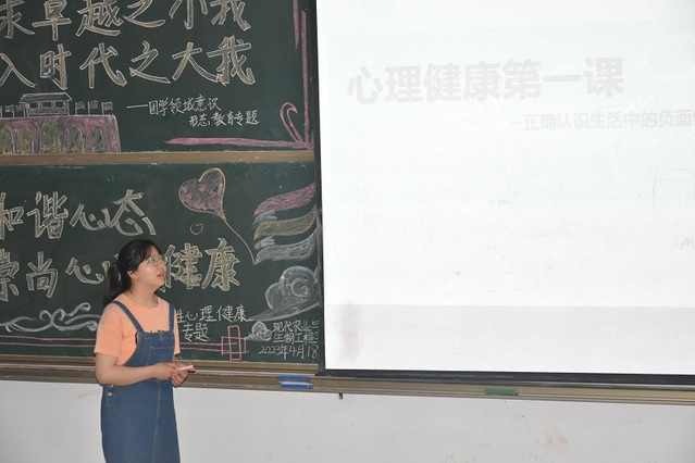 在各干事签到落座后,本次专题培训开始。首先,主讲人介绍心理健康与健康的关系。心理健康是指具有正常智力,积极的情绪,适度的情感,和谐的人际关系,良好的人格品质,坚强的意志和成熟的心理行为等。主讲人强调:只有心理健康,才是完满的健康。而后,主讲人讲解了心理健康课的开展意义。开展心理健康教育是建设和谐校园与和谐社会的需要,是实施素质教育的需要,是德育工作改革的需要,可以帮助学生了解青春期的生理和心理特点,安全地度过青春期。接着,主讲人开展心理健康第一课——正确认识生活中的负面情绪。事实上,每个人都有负面情绪,但其实负面情绪不等同于心理健康疾病。对此,主讲人向参会干部和干事同学介绍了自己怎么缓解生活中一些办法。如可以在放松身体、健康饮食、运动锻炼、社交交往、睡眠质量等方面进行自我解压。自我解压是一个不断进行自我调整的过程,通过这种方式来进行自我调整和精神抚慰,使我们能够摆脱压力,从而得到心灵慰藉和身体健康。 然后,主讲人又介绍了怎么正确向外界寻求帮助。顺序可以参照——1、让别人注意到事件;2、让别人知觉为紧急事件;3、激发他人的助人责任感;4、让别人实施帮助。最后,主讲人分享了近期学生会工作和生活碎片,如长江师范学院第十六届田径运动会、学校景色、志愿活动的照片。至此,本次现代农业与生物工程学院2023年春季学期学生会工作人员主题培训结束。
