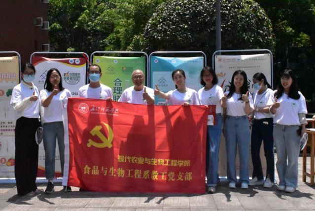 营养宣教进社区。5月15日—21日,学院食品与生工教工党支部、食品科学与工程专业学生支部、食品文化协会共同走进学校教师居民区、学生社区开展宣传活动,我院师生通过讲解、发放宣传资料、合理膳食指数测试等形式向过往师生宣传合理饮食在促进人民健康中的重要作用,为前来咨询的师生答疑解惑,引导居民合理膳食,纠正常见营养误区,为老百姓树立“合理膳食、食养是良医”、“健康中国 营养先行”的理念。活动现场,共接受群众咨询1200余人次,合理膳食指数测试900人次,发放健康科普资料4000余份,收效良好。