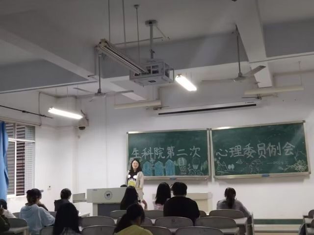 在春暖花开之际,于4月25日我们在诚意楼308教室召开了本学期的第二次心理委员例会。本次会议先由吴林蔓老师对即将到来的“5.25”(我爱我)心理健康活动进行了一些讲解,动员了大家参与,再由我们身心发展部成员进行了每月一次的心理委员例会。