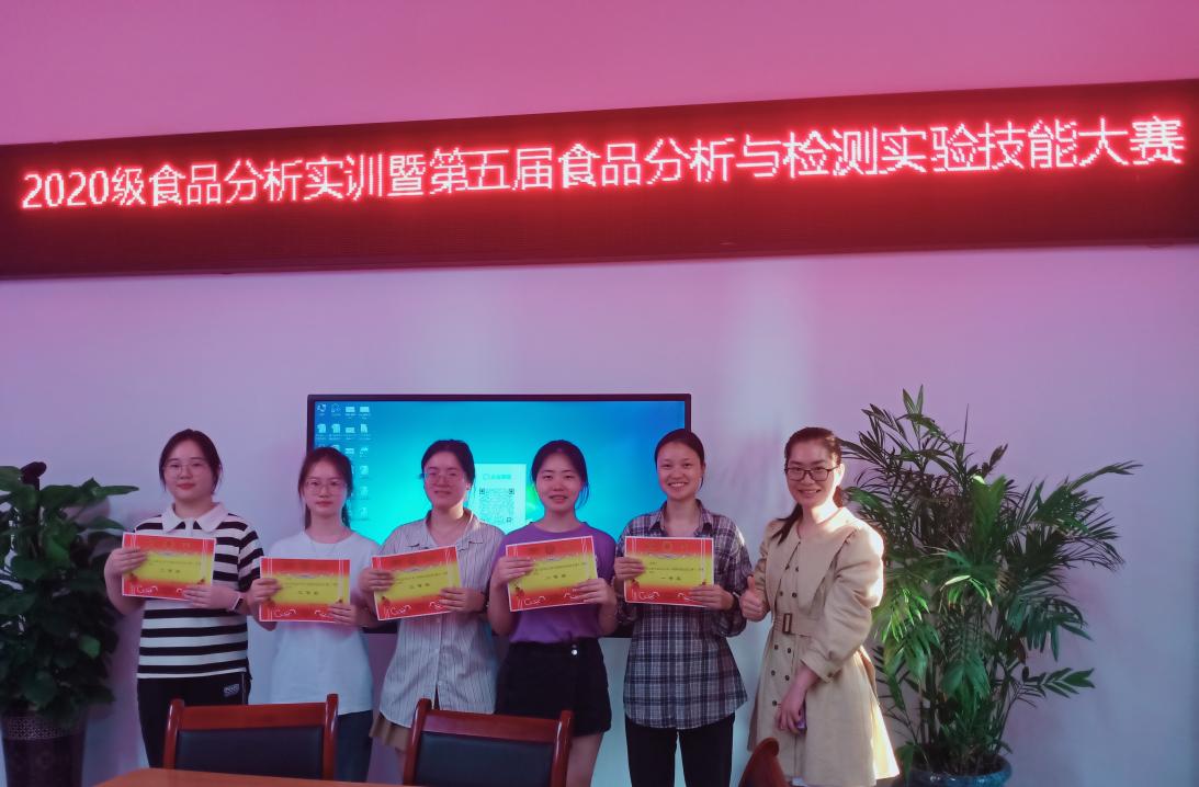 本次实训及实验技能大赛以“食品营养与安全评价”为主题,同学们以团队形式参与,通过方案设计、实际操作、分析报告撰写及汇报总结等环节展现自己的食品分析综合能力,最终评选出一二三等奖共五组。