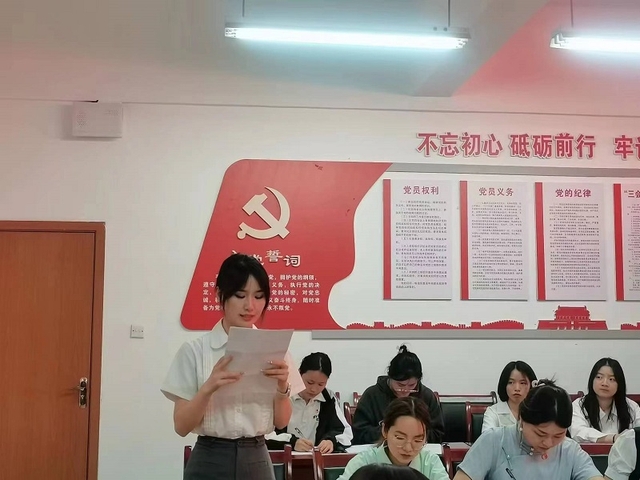 本次会议主要讨论张露、黄巧、蒋溶三位同志的转正问题。会议伊始,支部书记胡代芳老师宣布会议议题、统计参会党员人数,并宣布本次转正大会的计票人和监票人。首先,张露同志宣读了转正申请书,谈及预备期一年自己在思想、工作、学习、生活四个方面变化。然后,张露同志的两位入党介绍人分别介绍了该同志在预备期一年的情况,希望该同志在今后的学习工作中能够严格要求自己,提高工作上的积极性,并表示同意该同志如期转正。接着与会党员分别对张露同志提出一些建议,并进行投票表决。然后,黄巧同志宣读转正申请书,从思想、学习、工作、生活四个方面进行述职。接着黄巧同志的两位入党介绍人分别介绍了该同志预备期一年的情况,希望该同志今后继续加强学习,都表示同意该同志如期转正。最后,与会党员对黄巧同志提出建议,并进行投票表决。接着,蒋溶同志宣读转正申请书,讲述自己在预备期间思想、学习、工作、生活四个方面进行述职。接着蒋溶同志的两位入党介绍人分别介绍了该同志预备期一年的情况,希望该同志不断提升自身能力,对照不足进行改正,都表示同意该同志如期转正。最后,与会党员对蒋溶同志提出建议,并进行投票表决。大会最后,支部书记胡代芳同志对三位转正同志提出冀望,希望三位同志发挥模范带头作用进一步加强学习,努力工作,充分发挥一名共产党员的模范带头作用,为同学、班级、支部、学院做出自己的贡献。