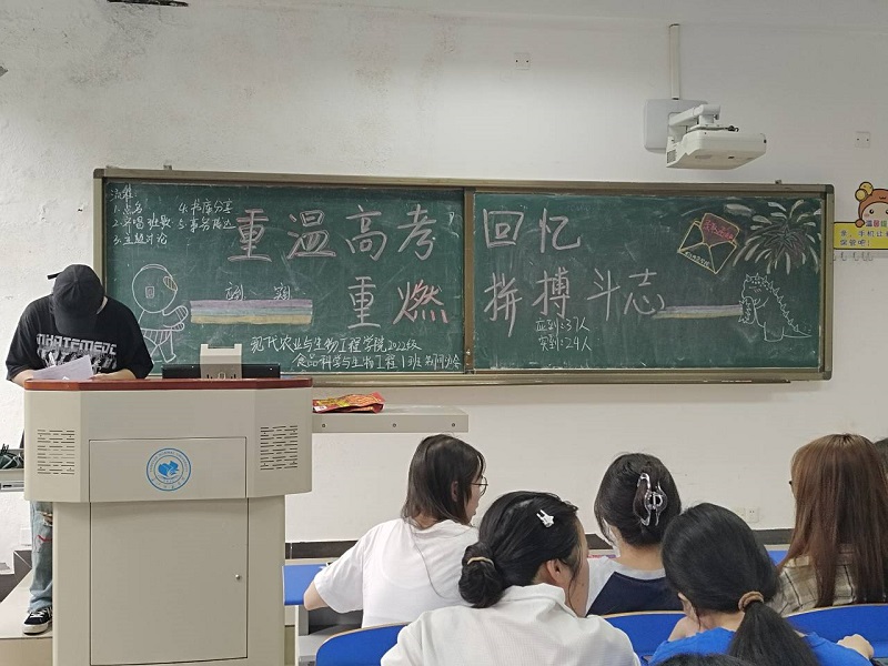时光飞逝,牵动人心的高考已经结束。为了让同学们回忆高考时的点滴,想起热血奋斗的时光,重新燃烧拼搏斗志;在从高中到大学人生的蜕变中让同学们了解幸福的定义和重要性,学会如何获得幸福。现代农业与生物工程学院于2023年6月11号开展“重温高考回忆 重燃拼搏斗志”的主题班会。本次班会由各班负责人主持,全院同学参加。