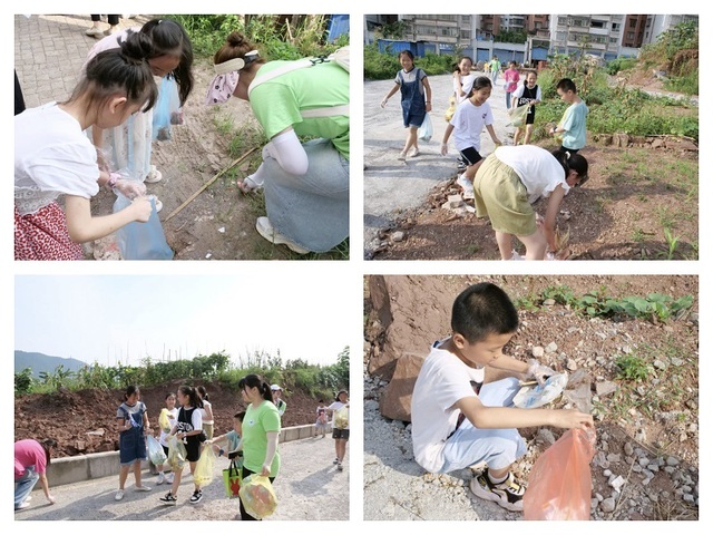 7月12日上午8:30,志愿者们乘坐公交车前往兴义镇观塔社区与小朋友们碰面。志愿者们经过明确的分工后,决定由一名志愿者带领两个小朋友的方式对街道的塑料袋、塑料瓶等白色垃圾进行全面清理。在志愿者给小朋友戴上手套,分发垃圾袋后,小朋友们便沿着长江沿线街道进行垃圾清理。志愿者们紧紧跟随着各自带领的小朋友,维护现场秩序,保护他们的安全,介绍环保的意义。活动过程中志愿者与小朋友充分发挥新时代青少年不怕苦不怕累的精神,齐心协力,使街道两旁的杂物垃圾得到了有效的清除。虽然七月盛夏烈日炎炎,大朋友、小朋友的辛勤汗水都浸湿了衣物,但本次河小青活动可谓“收获满满”:不但清理了河道沿线,用脚步丈量母亲河,更把“河小青”环保理念播撒在平都大地上,用实际行动守护了地球家园。垃圾清理结束后,志愿者们帮助小朋友们进行垃圾归类,统一丢入对应的垃圾桶中。