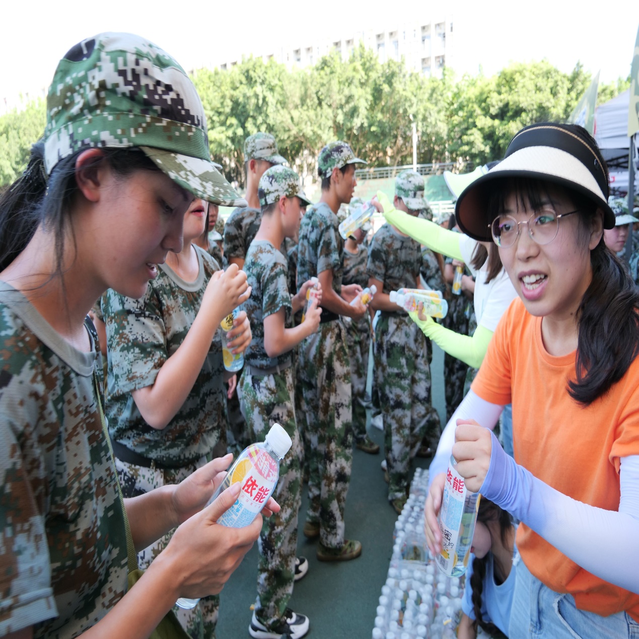 军训场上,正有序进行着军训汇报的彩排排练。军训教官指挥有度,同学们口号嘹亮,步伐整齐。现代农业与生物工程学院的军训方阵军姿挺拔、精神饱满,展现出学院学子生生不息的精神风貌。院团委书记姚佳妤老师、辅导员胡代芳老师趁着训练休息的间歇,给同学们带来了清凉解暑的饮料,组织服务站台的志愿者们有序发放。在此期间,两位老师也对军训教官期间的辛勤付出表示衷心的感谢,对参训同学们表示亲切的问候,对军训学子奋发向上、不惧酷暑的拼搏精神给予充分肯定,希望同学们继续发扬不怕苦、不怕累的红军精神,以严谨认真的训练作风、积极向上的军训态度、饱满热情的斗志投入到训练中,保质保量完成各项军训任务,为即将到来的军训汇报打下坚实基础,让这段难忘的军训时光谱写下完美的结尾。