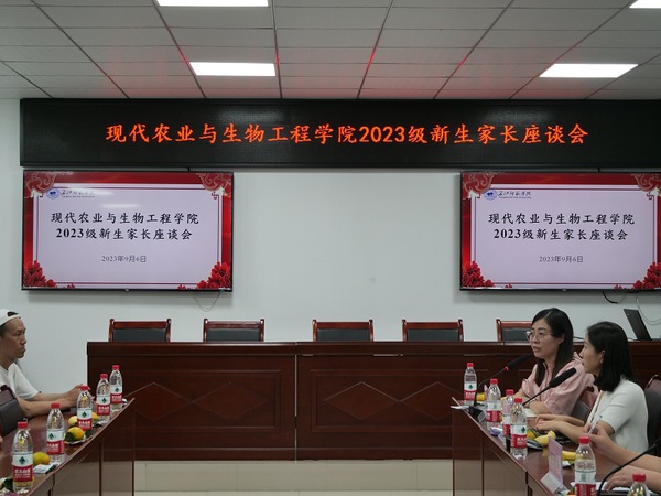 为加强新生教育与家校联系,帮助新生家长更深入地了解孩子未来在学校的学习生活以及作为一名“大学生”家长该如何继续陪伴、支持孩子,现代农业与生物工程学院于2023年9月6日下午15点在格律楼3101会议室召开2023届新生家长座谈会。院长汪建华、副院长郑俏然、党委副书记李昌满、团委书记姚佳妤、2023级辅导员谢波老师以及部分新生家长参与此次会议。