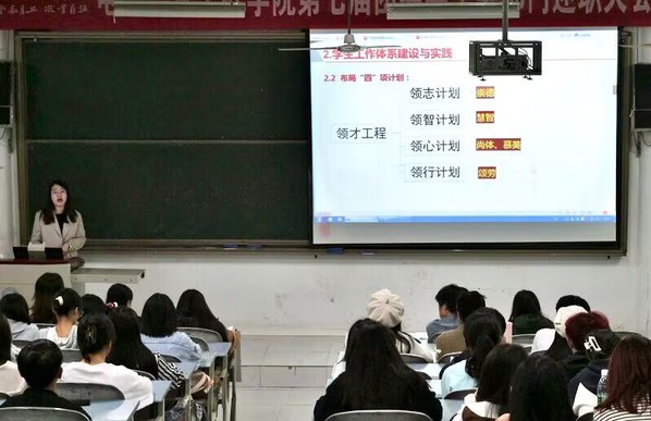 为加强各班级、部门建设,调动学生骨干工作的积极性,落实学校各项常规工作,切实传达各项事宜,合理规划学院未来工作。2023年10月10日18:10,现代农业与生物工程学院于格律楼03阶梯教室举行2023年秋期第一次学生骨干例会。此次例会由学生会执行主席黄秋月主持,院团委书记姚佳妤老师主讲,现代农业与生物工程学院全体学生骨干参加。