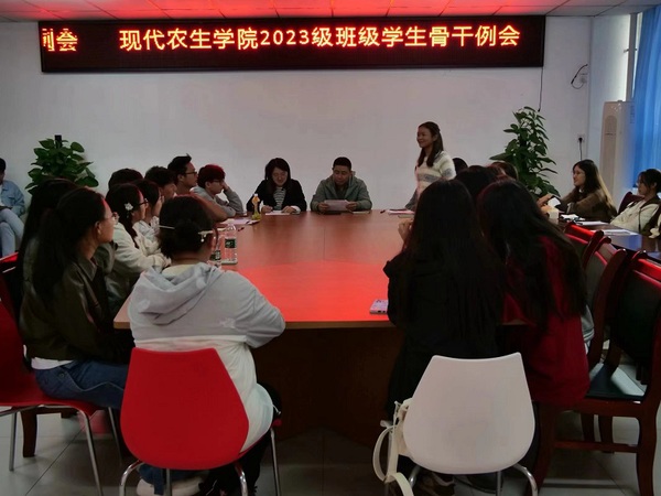 为促进老师与2023级新生班委之间的联系,加强学院各班级学风建设,2023年10月13日下午3点整,现代农业与生物工程学院于格律楼3411召开了“2023年班级学生骨干例会”。本次会议由2023级辅导员吴林蔓老师和谢波老师主讲,23级各班新生班委参加。