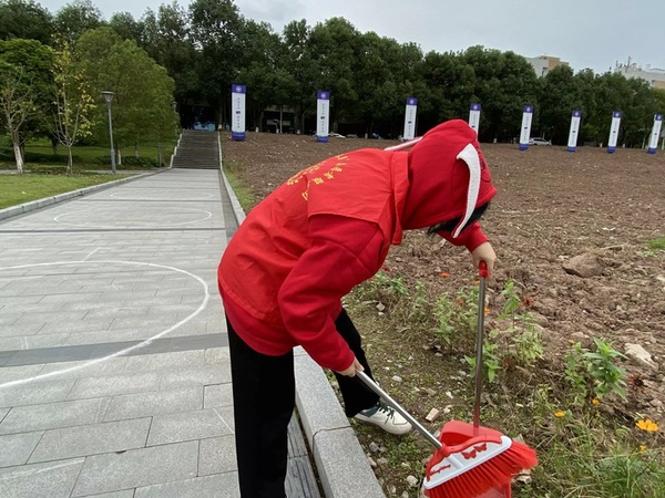 在活动当天,志愿者们提前来到东门集合,并准备好了扫把、簸箕、手套等清洁工具。在简单的和大家讲解了具体操作流程并分配好相应的任务之后,活动正式开始,志愿者们依次主动沿着道路清扫落叶、捡拾垃圾,虽然在活动中有淅淅沥沥的小雨,但大家不畏困难、两两之间相互协作,分工明确,不仅提高了活动效率,而且使地面变得一尘不染、焕然一新。活动结束后,志愿者们都分享了自己的感受和体会,回望这一路的成果,大家明白了保护环境的重要性,脸上洋溢着幸福的笑容和满满的自豪感。