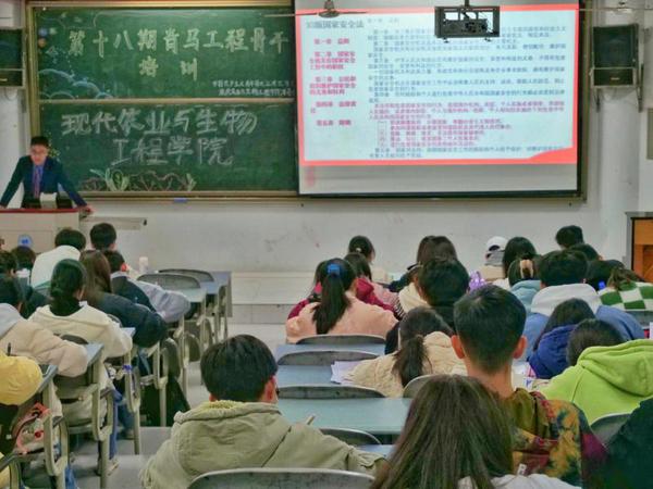 会议伊始,汪明训老师向同学们介绍了本次会议的主题“国家安全法”,细致并全面地阐述了多条重点的国家安全法规,让同学们更加深入地了解国家安全法律法规,明白维护国家安全从小事做起。随后,汪明训老师强调,国家安全、国家利益正时刻面临着军事力量与战争、经济制裁、文化渗透等多方面的威胁,只有国家安全得到保障的前提下,人们才能享受和平稳定的生活,经济发展才能持续健康。所以,维护国家安全是每个国民共同的责任。最后,汪明训老师鼓励学生们牢记国家利益,及时发现别有用心者,依法即时举报,进行斗争,绝不任其肆意妄为。至此,本次现代农业与生物工程学院第十八期青马工程第五次培训会圆满结束。