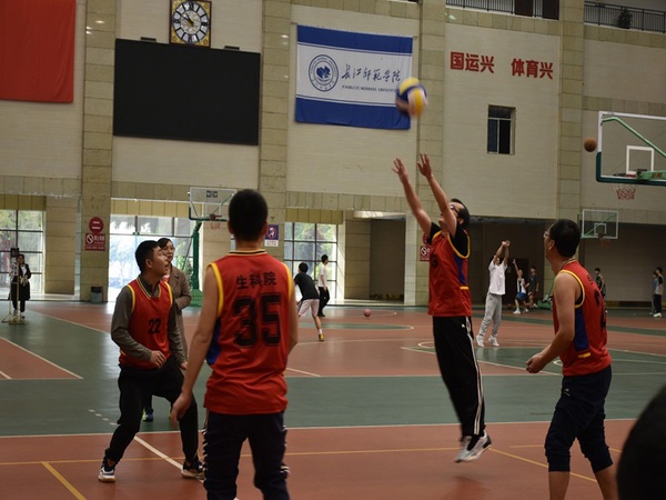 本次比赛的决赛于11月26日中午举行,现代农业与生物工程学院对战体育学院、机器人学院和音乐学院三支队伍。我院队伍由汪明训、谢波、罗刚军、廖静静等老师组成。随着裁判哨声响起,各队伍立刻以昂扬的气势展开了激烈对抗。虽然不是专业选手,但各队老师们均以执着的精神和专注的态度参与到进攻和防守之中。从一开始的试探到愈发凶猛的进攻和滴水不漏的防守,即使走下讲台,老师们认真昂扬的姿态也仍旧散发着感染人心的风采。场外传来观众愈发热烈的喝彩声,场内的气氛也逐渐热烈起来。最终伴随着老师凌空跃起的一记扣杀落地,整个场馆掌声雷动,比赛也在同学们的欢呼声中拉下帷幕。