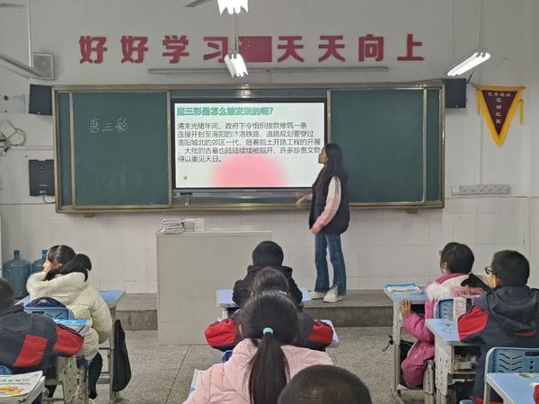 志愿者提前做好准备工作,并在活动当天于学校东门集合完毕后,统一乘车赶往致韩小学。路上大家认真聆听副部长冯华分享讲课经验,学习授课技巧。到达学校后,支教团受到了孩子们热情地迎接。虽然志愿团每个月到致韩小学支教的次数并不多,但大家都彼此约定:每一次的课堂,会因为志愿者用心准备的而充满期待;每一次的相聚,会因为同学们热忱相待而温馨美好。简单地寒暄后,志愿团者在同学们的簇拥下前往教室,布置现场、准备课件。待上课铃声响起,大家都以热情饱满的状态投入课堂,课程分别从唐三彩的“起源、特征、制作过程、作品欣赏、价值意义”五个方面,向同学们讲解了不同风格样貌的动物俑、天王俑等等。一个个精美绝伦的陶俑仿佛向我们述说着历史的厚重;一张张生动形象的照片仿佛在我们眼前重现了盛世大唐。活动结束后,同学们分享了自己在课堂上的体会与收获:通过课堂的学习,更加深刻的了解了非遗传统文化,也感受到中华民族五千年的精神文化气质和底蕴。