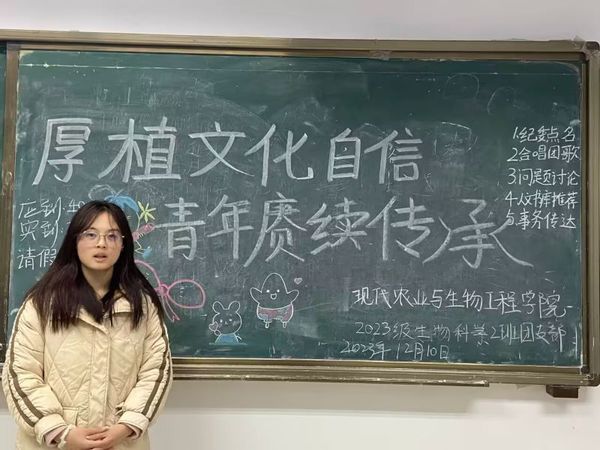 为引导广大青年继承和弘扬中华优秀传统文化,坚定文化自信,坚守中华文化立场,建设文化强国。2023年12月10日,现代农业与生物工程学院于崇礼楼开展以“厚植文化自信,青年赓续传承”为主题的团会。本次团会由各班团支书主讲,现代农业与生物工程学院全体学生参与。