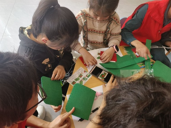 活动伊始,志愿者们向社区的青少年儿童介绍了活动主题,细致讲解了雷锋书签的制作步骤。在制作过程中,大家灵活利用手工材料并充分结合自身对雷锋精神的理解,把对雷锋叔叔的崇敬和怀念之情融入书签当中。雷锋书签制作完毕后,志愿者继续带领青少年儿童手工制作雷锋包,在为青少年儿童讲解针线打结收尾等注意事项的同时,志愿者也引导青少年儿童共同分享了自己身边的雷锋人物与雷锋事迹。整个过程中大家互合作、共同帮助,很好的体现出团结友爱、助人为乐的雷锋精神。