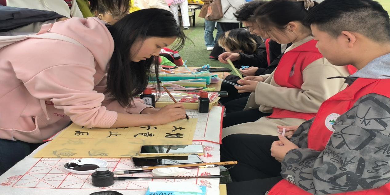 活动现场热闹非凡,洋溢着青春与奉献的气息。在“送你一朵小红花”扭扭棒DIY区域,同学们热情高涨,跟随视频教程,用灵巧的双手将扭扭棒变成了一朵朵娇艳的花朵、一个个精致的蝴蝶结。同学们相互交流、彼此协作,小小的扭扭棒传递着大大的温暖与善意。“墨韵雷锋·志愿同行”环节同样吸引了众多同学参与。他们手握毛笔,饱蘸浓墨,认真书写雷锋语录。每一笔每一划都倾注着对雷锋精神的敬意与传承。书写完成后,同学们纷纷拍照发至社交账号,呼吁更多人加入到志愿服务的行列中来。