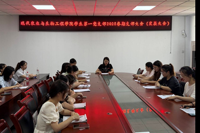 2025年6月17日,现代农业与生物工程学院学生第一党支部在格律楼3411召开2025年春期党员发展大会。本次大会的议题是“讨论预备党员的接收”。大会由支部书记吴林蔓老师主持,学生第一党支部全体党员参加。