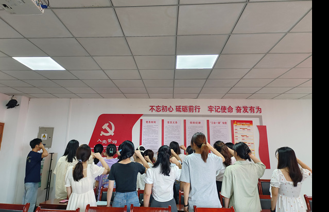 会议最后,吴老师组织新接收的预备党员进行入党宣誓,其余党员重温入党誓词。