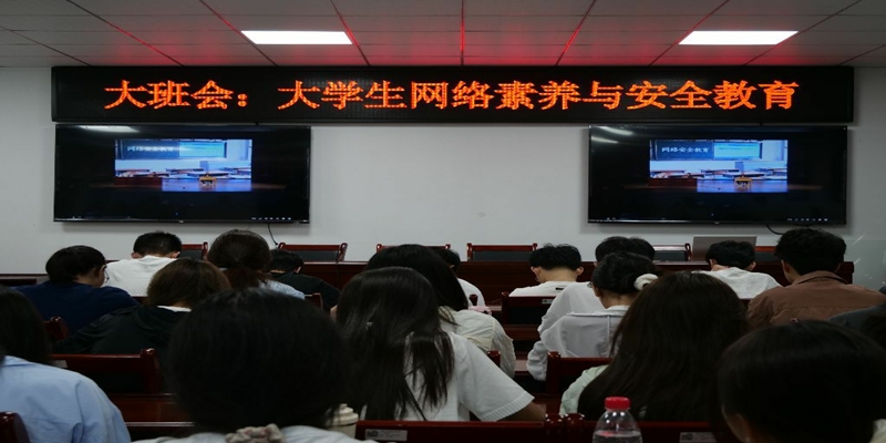 为提升大学生网络素养,增强网络安全意识,引导同学们文明上网、理性用网,2025年9月15日,由学校学生处开展的大学生网络素养与安全教育讲座在拏云活动中心举办。我院25级新生在诚意楼409、410教室以及格律楼3101会议室通过直播形式同步观看。