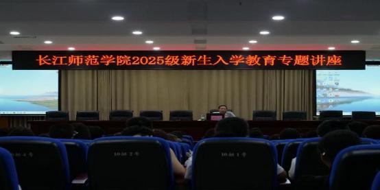 2025年9月15日上午8点,学院党委书记汪明松在鉴湖报告厅为2025级新生主讲“我的大学我做主”讲座,助力新生明晰大学生活方向。