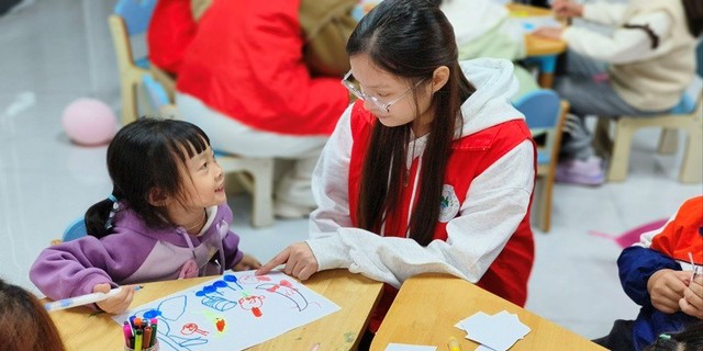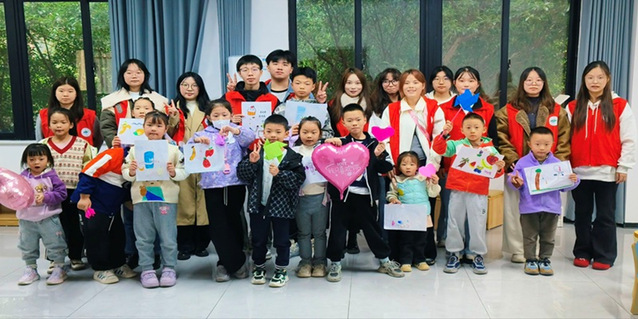 活动最后,小朋友们运用彩笔画出观察到的DNA形态,并与志愿者合影留念。