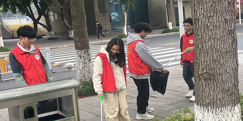 在实践环节,志愿者手持垃圾袋、垃圾钳,沿校园主干道及绿化带开展垃圾清捡行动。大家分工协作、默契配合,仔细清洁隐藏在草丛、角落的白色垃圾,用双手让环境焕新颜。