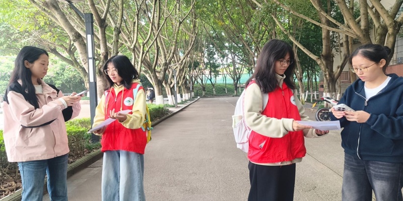 为解决校园垃圾混投导致的资源浪费和处理难题,同时培养大学生垃圾分类意识,营造绿色校园氛围,学院“生生不息”志愿者服务团携手2025级生物工程一班团支部,于11月2日在校园里开展“分享绿色,类聚文明”河小青志愿行动。以“垃圾分类+问卷调查”的形式,用实际行动践行环保理念。