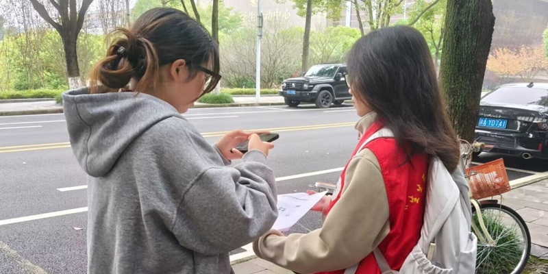 在垃圾分类问卷调查活动中,志愿者向同学们详细介绍垃圾分类知识,发放精心设计的问卷。同学们也积极参与,认真填写并分享自己对垃圾分类的认识。